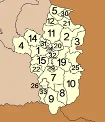 Esta provincia tailandesa se encuentra subdividida en una cantidad de distritos (amphoe) que aparecen numerados a continuación:
