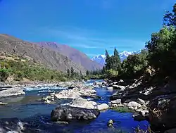 ![]() Vista del río Urubamba, con el nevado Verónica de fondo.