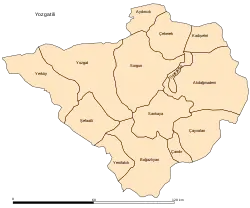 Yozgat (distrito capital), Akdagmadeni, Aydincik, Bogazliyan, Candir, Cayiralan, Cekerek, Kadisehri, Saraykent, Sarikaya, Sorgun, Sefaatli, Yerkoy y Yenifakili.