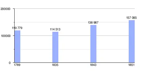 • 1789[2] est. | 119 779 hab. | ||||||||||||||||||||||||||||||||||||||
