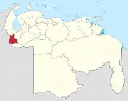 ![]() Localización de la provincia de Táchira en Venezuela | |||||||||||||||||||||||||||||||