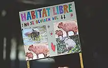 Cartel en reclamo por el carpincho, en clara referencia a los memes del 2020. Marcha en la ciudad de Santa Fe, septiembre 2022.
