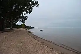 ![]() La punta Chaparro (cabecera uruguaya del proyectado puente) desde la playa de la Agraciada. | |||||