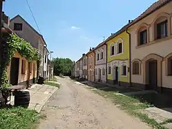 Se encuentra ubicada al sureste de la región, cerca de la orilla del río Morava —un afluente izquierdo del Danubio—, de la frontera con la región de Zlín y Eslovaquia, y a poca distancia al sureste de la ciudad de Brno.[1]