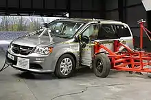 - Pruebas roll-over: que pone a prueba la capacidad de un coche (específicamente los pilares que sostienen el techo) para apoyar a sí mismo en un impacto dinámico. Más recientemente, se han propuesto pruebas de vuelco dinámico en lugar de pruebas de aplastamiento estático (video). [1]