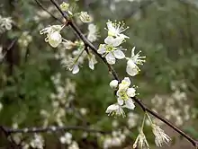 Prunus angustifolia (Marsh.) se hibrida naturalmente con P. americana para producir Prunus × orthosepala Koehne.[15]