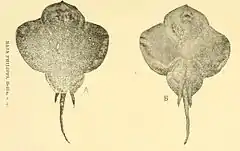 - Esta obra contiene una traducción derivada de «Psammobatis scobina» de Wikipedia en catalán, publicada por sus editores bajo la Licencia de documentación libre de GNU y la Licencia Creative Commons Atribución-CompartirIgual 3.0 Unported.