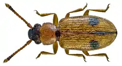 - Esta obra contiene una traducción derivada de «Psammoecus» de Wikipedia en inglés, publicada por sus editores bajo la Licencia de documentación libre de GNU y la Licencia Creative Commons Atribución-CompartirIgual 3.0 Unported.