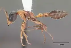 Es una especie grande y delgada nativa de México y las zonas áridas de los Estados Unidos. Las obreras miden entre 8 y 10 milímetros (0,31 a 0,39 pulgadas) de largo y, por lo general, tienen una apariencia y un estilo de movimiento similares a las de una avispa. Las hormigas obreras son bicolores; la cabeza y el gáster son oscuros, mientras que las antenas, las piezas bucales, el tórax y las patas son de color naranja mate con sombras oscuras. A menudo se les puede ver en la vegetación, buscando insectos vivos o recolectando mielada de insectos chupadores de savia.[2]
