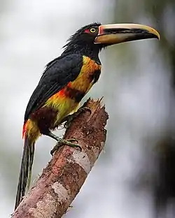 - Otros nombres: Tucán o Pili, pale mandibled aracàri (Pteroglosus erythropygius).
