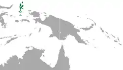 Es endémico de Indonesia, encontrándose en las Molucas septentrionales y en la isla de Gag.