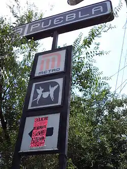 Puebla es una estación del Metro de Ciudad de México. Recibe su nombre por encontrarse en la colonia Puebla, la cual recibe ese nombre por el estado y capital del mismo, Puebla. El símbolo representa a unos ángeles ya que el nombre de completo de Puebla alguna vez fue Puebla de los Ángeles.