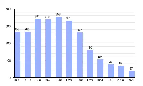 Gráfica de evolución demográfica de Puebla de San Medel entre 1900 y 2021 |