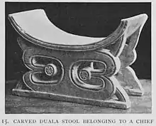 La sociedad tradicional duala se dividió en tres estratos. En la parte superior se encontraban los wonja, nativos de Duala, con plenos derechos de propiedad de la tierra. El siguiente nivel consistía en los wajili, ya sea pueblos no duala o descendientes de esclavos. Finalmente, los wakomi, o esclavos, formaron el peldaño inferior. Los jefes se sentaron en el pináculo de esta jerarquía en el pasado, aunque hoy tales figuras tienen muy poco poder por derecho propio. En cambio, tales individuos tienen más probabilidades de poseer propiedades y de haber heredado la riqueza. Los consejos de ancianos y las sociedades secretas permiten a las comunidades decidir cuestiones importantes.[20]