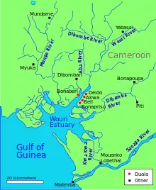 Según la tradición duala, los grupos étnicos bakoko y bassa ocupaban el estuario Wouri cuando llegaron los duala. Los duala los condujo tierra adentro, un desplazamiento que probablemente ocurrió a finales del siglo XVII o principios del XVIII.[4]