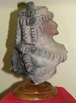 Pieza arqueológica antropomorfa, hecha en cerámica, denominada "La dama de Nueva Palmira", de la etnia timbú, expuesta en el museo municipal profesor Lucas Roselli, de la ciudad de Nueva Palmira, departamento de Colonia, Uruguay.