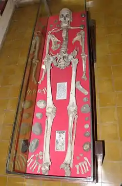 Esqueleto de un aborigen, posiblemente de la etnia timbú, expuesto en el museo municipal profesor Lucas Roselli, de la ciudad de Nueva Palmira, departamento de Colonia, Uruguay.
