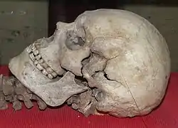 Cráneo de un aborigen, posiblemente de la etnia timbú, expuesto en el museo municipal profesor Lucas Roselli, de la ciudad de Nueva Palmira, departamento de Colonia, Uruguay.