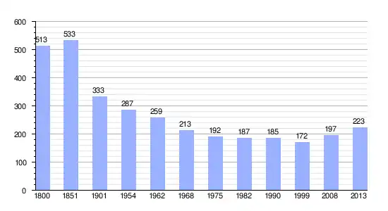 Los datos demográficos contemplados en este gráfico de la comuna de Puellemontier[4] se han cogido de 1800 a 1999 de la página francesa EHESS/Cassini, y los demás datos de la página del INSEE.[5]