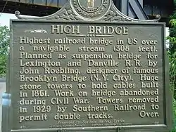 Un primer puente sobre el río Kentucky (para el ferrocarril entre Lexington y Danville) se inició en la década de 1850. Proyectado por John Augustus Roebling (diseñador del Puente de Brooklyn) como un puente colgante soportado por torres de sillería, no se completó. Las torres para los cables de suspensión permanecieron allí hasta 1929.
