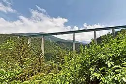 La distancia más larga entre apoyos es de 198 m. Construido entre 1959 y 1963, fue una vez el puente más alto de Europa, pues se eleva 190 metros (620 pies) sobre el suelo. El Viaducto Italia le arrebató este título en 1974.