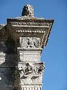 Los viajeros que accedían al puente pasaban bajo dos arcos monumentales colocados en cada lado del río. Los frisos y arquitrabes de estos arcos tienen cada uno la misma inscripción en latín local.