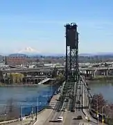 El puente consta de cinco tramos fijos y un tramo de elevación vertical de 74 m de longitud; en total mide 421 m de largo. Los contrapesos, que pesan 400 000 kg, están suspendidos de dos torres de 50 m de alto.[1] El puente está a solo 15 m por encima del agua aun cuando el nivel del río está bajo, por lo que debe levantárselo en promedio 200 veces al mes. En 2001, el tráfico diario promedio fue de 30 500 vehículos. El puente fue diseñado por la firma Waddell & Harrington, que también diseñó otros dos puentes en Portland: un puente de acero (“Steel Bridge”) y el puente interestatal (“Interstate Bridge”), que une los estados de Oregón y Washington.[1] John Alexander Low Waddell inventó el puente de elevación vertical moderno.[1]