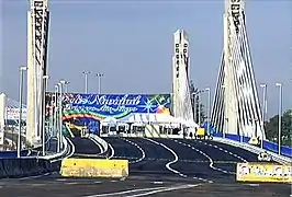 Es un puente atirantado de hormigón armado que tiene una longitud total de 647,10 metros. Se puede dividir en tres tramos: el viaducto de acceso este, el puente principal y el viaducto de acceso oeste que tienen una longitud de 233, 346,9 y 68,20 respectivamente.[3]