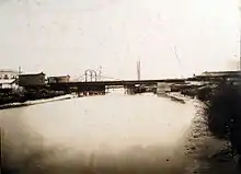 En 1899 se empezó a construir un puente de hierro con tramo central levadizo (contaba con cuatro columnas) para el pasaje de barcos, inaugurándose en 1903.