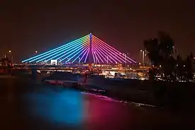 El puente se inauguró inaugurada el 7 de noviembre de 2006 y costó dos millones y medio de soles (780 000 dólares).[2][1] Luego se instaló un sistema de iluminación, compuesto de cerca de 7000 luces led, colocados sobre los 1500 m de estructuras atirantadas que sostienen el puente, con un costo de 381 000 soles.[3]