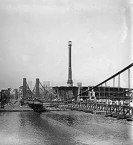 Sus trabajos de construcción se iniciaron en 1849 y se terminaron en 1852. Fue construido y era propiedad de Ynchausti y Compañía, la empresa presidida por José Joaquín de Ynchausti.[1] La estructura fue nombrada "Puente de Clavería", probablemente en honor del Gobernador general de Filipinas Narciso Clavería, quien estuvo en el cargo en el período 1844-1849.