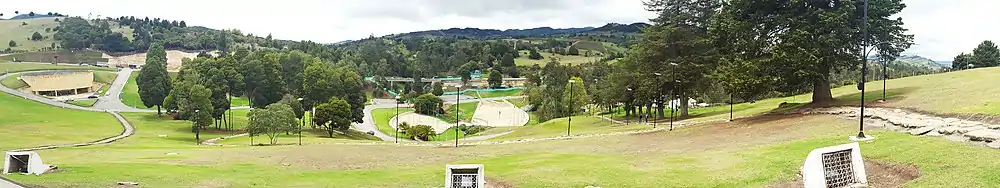 - El monumento a Simón Bolívar: situado en la zona sur sobre una colina, es la estatua de Bolívar con la bandera de Colombia sobre su pecho, sobre un pedestal sostenido por cinco mujeres haciendo alegoría a las cinco naciones libertadas por el prócer: Colombia, Venezuela, Perú, Ecuador y Bolivia, además teniendo en cuenta el territorio de Panamá que pertenecía al territorio colombiano. En frente se encuentra la estatua de Clio, la Musa de la Historia quien sostiene un manuscrito.