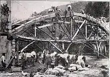 La construcción fue costeada por Vletoriano Díaz y llevada a cabo entre mil novecientos dos y mil novecientos tres bajo la dirección de Arturo Fábrega, de acuerdo al sistema preconizado por el ingeniero José Eugenio Ribera. El objeto principal de dicho sistema era evitar el coste y el peligro de las cimbras construyendo la armadura de los arcos con elementos que tuvieran estabilidad y rigidez propia. Aunque como se puede apreciar en la fotografía de la izquierda, finalmente fue necesario instalar una cimbra rígida para soportar la tabla de hormigón que se extendió a todo el ancho de la estructura.[1] La inauguración de la obra se hizo tras las pruebas de resistencia a mediados de mil novecientos tres, convirtiéndose en uno de los primeros puentes de hormigón armado construidos en España y también, en el primer puente español en emplear el sistema de armadura rígida portante como soporte del encofrado.[2] [3]