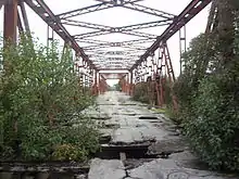 El Puente fue construido sobre el antiguo trazado de la ruta 5, sobre el cruce del Río Santa Lucía siendo durante mucho tiempo, la principal vía de conexión de los departamentos de Florida y Canelones. El mismo fue construido en hierro fundido y madera. Sumilar a los puentes ferroviarios.