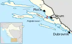 La región de Dubrovnik está separada del resto de Croacia por la franja costera de Neum, única desembocadura al mar de Bosnia y Herzegovina. Para pasar de una parte a otra de Croacia, es necesario transitar a través Bosnia, por la ciudad portuaria de Neum, o coger un transbordador entre las ciudades croatas de Trappano y Porto Tolero. El proyecto de puente pretende unir la región de Duvrovnik del resto de Croacia sin pasar por el corredor bosnio de Neum.