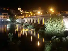 El Puente de Piedra de Zamora (denominado también Puente Nuevo de Zamora en la Edad Media) es uno de los cinco puentes que atraviesan el río Duero a su paso por la capital de la provincia homónima. Durante siglos fue el único paso del río en la ciudad, comunicando los barrios del arrabal con el centro histórico de la ciudad.[1] En la actualidad es una vía de enlace entre Avenida de Vigo (margen derecho) y la Plaza de Belén (margen izquierdo). Por su situación en la Vía de la Plata, fue un importante lugar de paso del río Duero para personas, mercancías y rebaños trashumantes.[2] Fue terminado de construir a comienzos del siglo XIII,[3] y reformado posteriormente en varias ocasiones, es en la actualidad uno de los símbolos más representativos de la ciudad. En intervenciones realizadas a comienzos del siglo XX se modificaron radicalmente muchos elementos ornamentales del puente, se eliminaron las dos torres existentes a ambos lados de la entrada del puente, con el objeto de poder hacerlo más accesible al creciente tráfico rodado. Gran parte de los adornos y ornamentos del puente desaparecieron en esta profunda reforma. Solo queda del material pétreo original: las bóvedas de los arcos mayores y las pilas, aunque éstas fueron retocadas a conciencia.[4] El puente es parte de la ruta jacobea de la plata.[5] Históricamente es parte de la calzada romana denominada Iter ab Emerita Asturicam del Itinerario de Antonio. Durante siglos posteriores fue un importante lugar de paso del río Duero para personas, mercancías y rebaños trashumantes. La apertura en 2013 del denominado puente de los Poetas hizo que se convirtiera en puente peatonal.