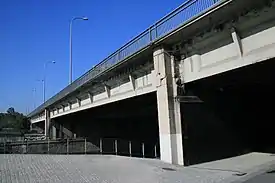El puente de Praga cruza el río Manzanares prolongando el Paseo de Santa María de la Cabeza (Madrid) hacia la carretera de Toledo y comunicando así los distritos de Arganzuela y Carabanchel.