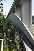 El ingeniero alemán Fritz Leonhardt sugirió que: «Estos puentes en arco del tipo de Maillart sólo quedan bien en situaciones especiales, como aquí sobre un cañón y con un fondo montañoso».[9]