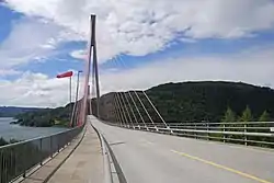 Con un vano central de 530 m, es el puente atirantado más largo de Noruega[1] y el 31.º más largo del mundo (en octubre de 2014). Fue el puente más largo de su tipo en el mundo durante dos años (fue superado por el puente Yangpu de Shanghái). Las dos torres de 152 m de altura se encuentran en Kjerringvik, en Mosvik, en el lado oeste, y en Vangshylla, en Inderøy, en el lado este. Tras la inauguración, durante un periodo de diecisiete años será de peaje, necesarios para financiar el 30% de la inversión de 200 millones de coronas noruegas. En 2007, el puente fue catalogado como patrimonio cultural.