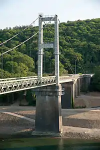 El primer puente de Térénez fue construido entre 1913 y 1925. Se trataba de un puente colgante con una longitud de 350 m, de ellos 272 m en el tramo principal.[1] El 13 de diciembre de 1925 fue abierto al tráfico y en esa época era el puente más grande en Europa.[2] Este puente de Térénez fue destruido el 24 de agosto de 1944 por el ejército alemán, para retrasar el avance de las tropas aliadas (aunque hay testigos que dicen que fue destruido por los bombardeos estadounidenses, al mismo tiempo que estaban bombardeando la cercana ciudad de Telgruc[cita requerida]).