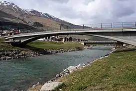 ![]() Vista norte del puente, hacia el pueblo de Zuoz | ||