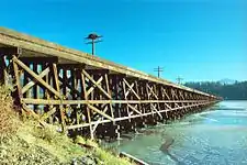 ![]() Puente ferroviario de caballetes de madera sobre el Lago Benewah, Montana |