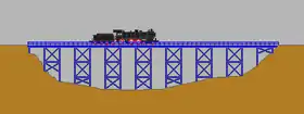 Está compuesto por una serie de tramos cortos soportados por dichos marcos. Cada marco de soporte es un castillete de celosía. Los puentes de caballetes tanto de madera como de hierro se utilizaron ampliamente en el siglo XIX, representando por entonces entre el 1 y el 3 por ciento de la longitud total de un ferrocarril promedio.[2] En el siglo XXI, los caballetes de acero y algunas veces de hormigón se usan en ocasiones para atravesar valles particularmente profundos, mientras que los caballetes de madera todavía se pueden encontrar en ciertas áreas donde este material ha sido abundante y barato.