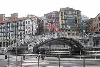 El puente de la Ribera es un puente peatonal ubicado en la villa de Bilbao, el cual salva la ría y es conocido también como puente de San Francisco.