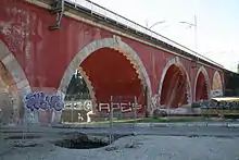 El puente fue construido entre los años 1860 y 1862 por ingenieros franceses con el objeto de poder dar servicio a la línea férrea del Norte (Madrid-Venta de Baños-Irún), en su cruce con el río Manzanares.[3] Su nombre popular se debe a la presencia de estos obreros franceses durante su construcción, y la convivencia con los madrileños. Se realizó el viaducto en una mezcla de rojo ladrillo y granito (empleado en las dovelas). El Puente se encontraba en las cercanías de la Estación del Norte. Se encuentra a orillas del río en la frontera con la Casa de Campo.