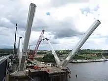 Estructuras auxiliares | En ocasiones se construye mediante voladizos sujetos mediante cables | |