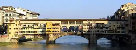 El Ponte Vecchio, en Florencia, fue construido en 1345 para reemplazar el antiguo puente romano sobre el río Arno. En 1564, Giorgio Vasari reestructuró el puente por orden del gran duque Fernando I de Médici para que pasase por él el corredor Vasari (Corridoio Vasariano), el largo corredor que une el palazzo Vecchio con el palacio Pitti. Las tiendas estaban entonces reservadas solo para joyeros y orfebres.