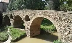 Se conoce por el nombre de Puente de Queralt y está construido sobre el puente anterior. Tiene una longitud de 35m y una anchura de 3m. Actualmente consta de cuatro arcos de medio punto con una misma luz, que descansan sobre tres pilares sobre el cauce del río. Está reforzado desde la mitad, aproximadamente hasta sus cimientos. Estos refuerzos están pensados para mejorar la resistencia hidráulica de los pilares a la corriente. Sobre cada uno de los pilares están los arcones correspondientes, destinados a mejorar la esbeltez del puente y rebajar la obra muerta. Como aportaciones medievales posteriores, podemos destacar los perfiles triangulares de los pilares y los arcones, que también podemos encontrar en puentes de la misma época.