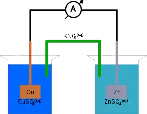 Cuando los electrones salen de una semicelda de la pila galvánica y fluyen a la otra, se establece una diferencia de potencial entre ellas. Si no se utilizara un puente salino, esta diferencia de potencial evitaría el flujo de más electrones. Un puente salino permite el flujo de los iones para mantener un equilibrio en la carga entre los recipientes de la oxidación y la reducción mientras mantiene separado el contenido de cada uno. Con la diferencia de carga equilibrada, los electrones pueden fluir una vez más, y las reacciones de reducción y oxidación pueden continuar. En general, es preferible mantener las dos celdas separadas desde el punto de vista de la eliminación de las variables en un experimento. Cuando no se permite el contacto directo entre los electrolitos, no es necesario tener en cuenta las posibles interacciones entre las especies iónicas.