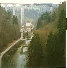 Puente viga de acero. Obsérvese que la mayor sección está en el centro, zona donde el momento flector suele ser mayor. Los vanos laterales, son en arco, y en la parte inferior de la foto, hay otro puente viga.